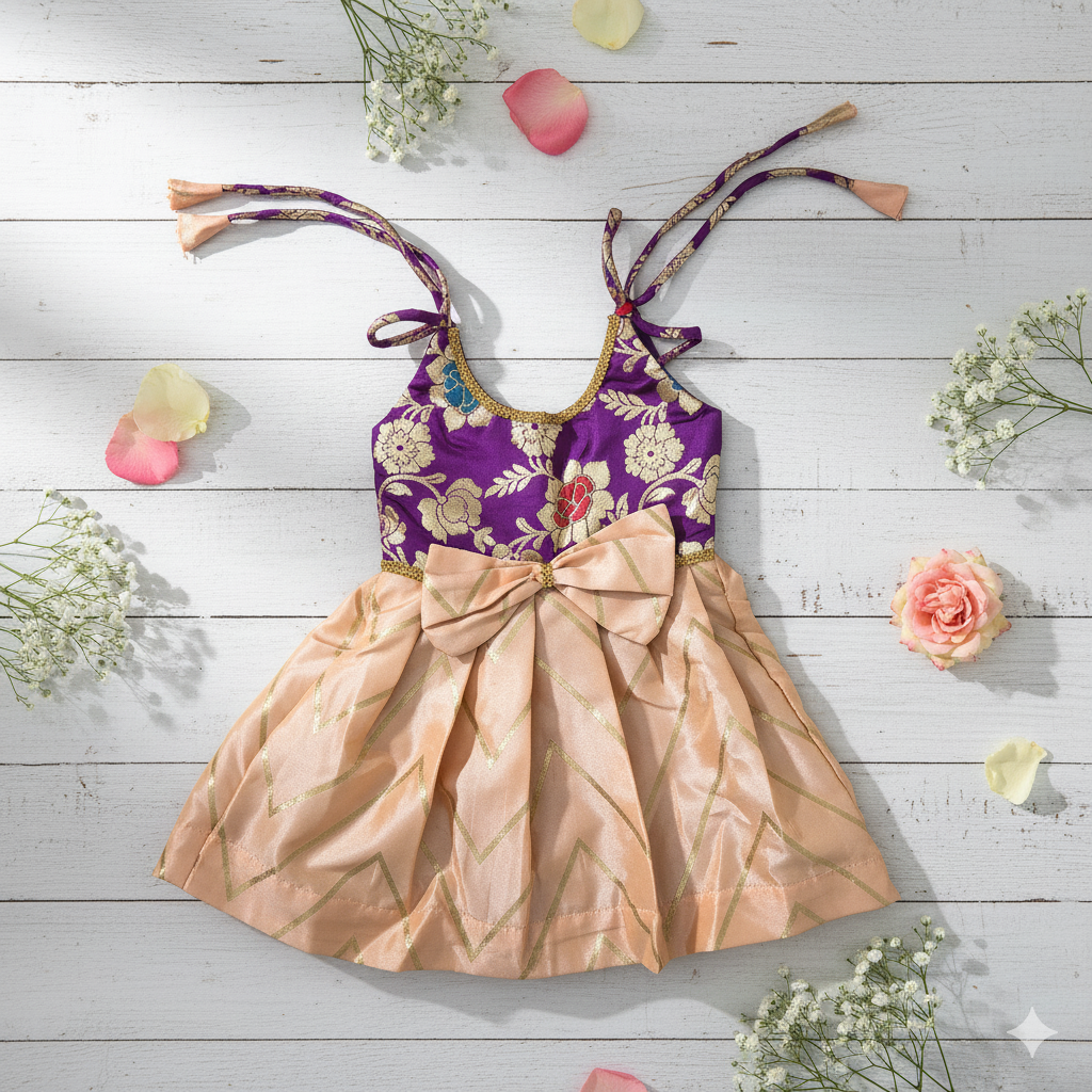 ❥ Baby Girls Brocade & Pure Silk Festive Frock designed for elegant newborn celebrations