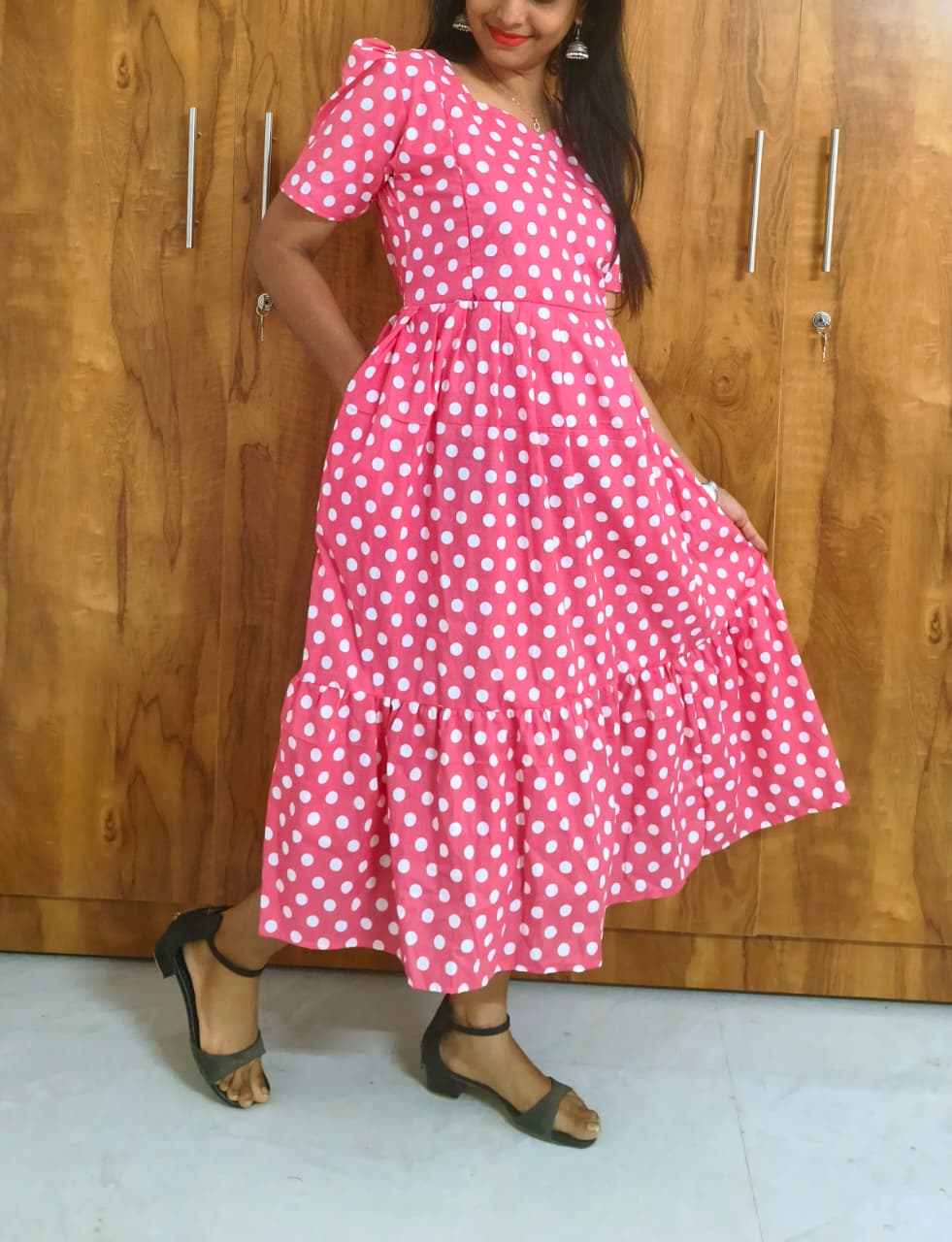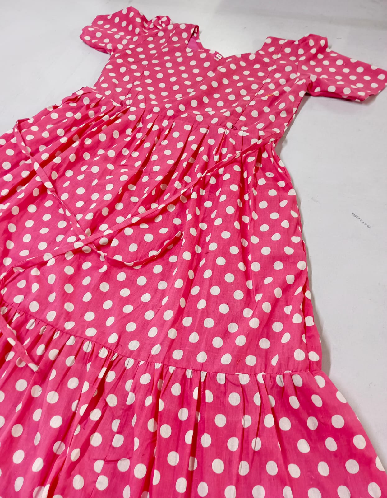 Cotton Pink Polka 2-Tier Feeding Maxi Dress