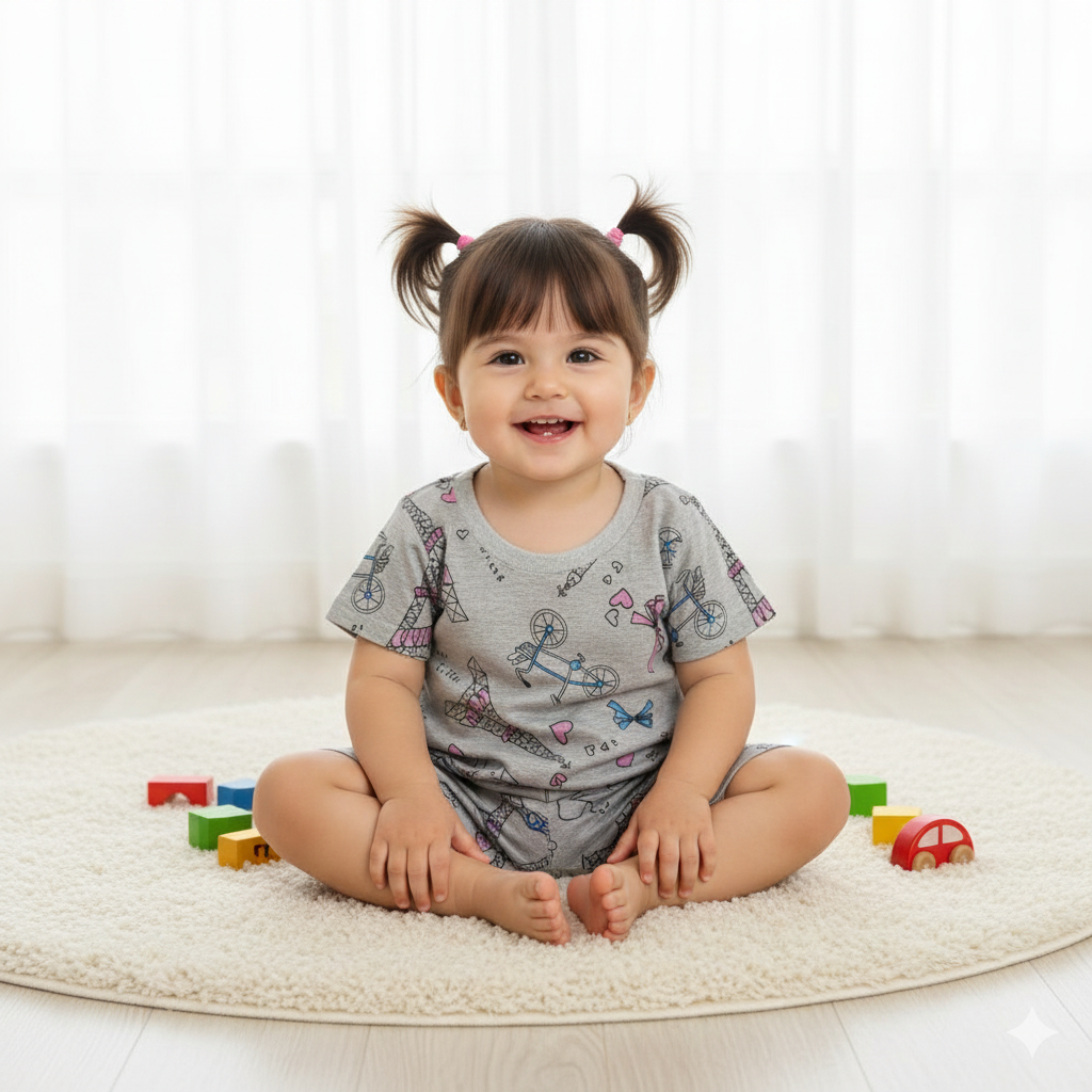 ❥ Fine Cotton T-Shirt & Shorts Co-Ord Set for Kids designed for everyday comfort from baby to toddler stage