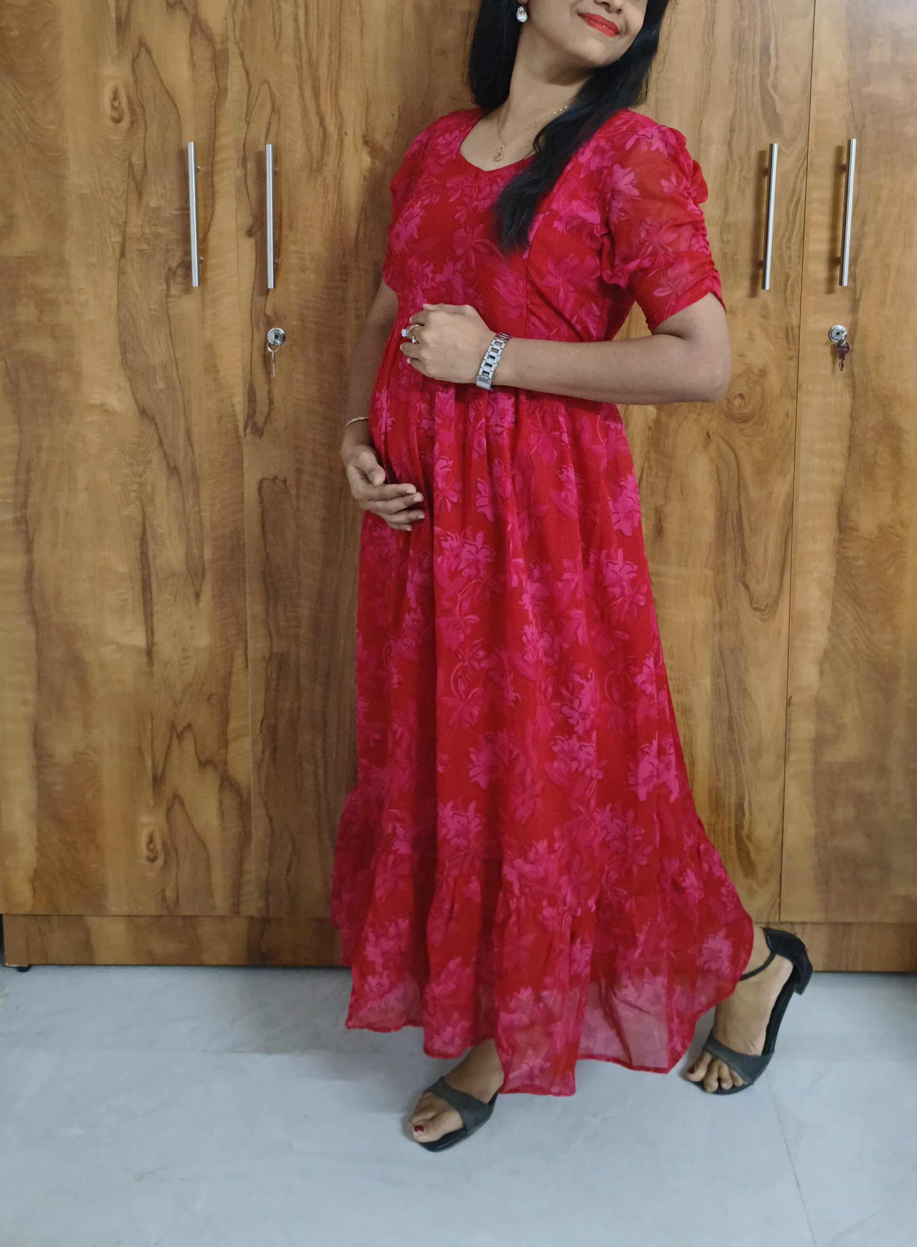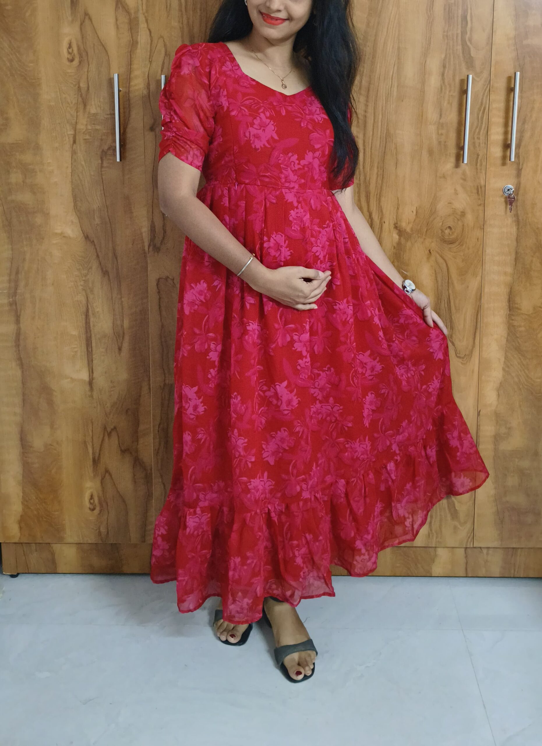 ❥ Georgette 2-Tier Feeding Frock designed for comfortable maternity & nursing wear