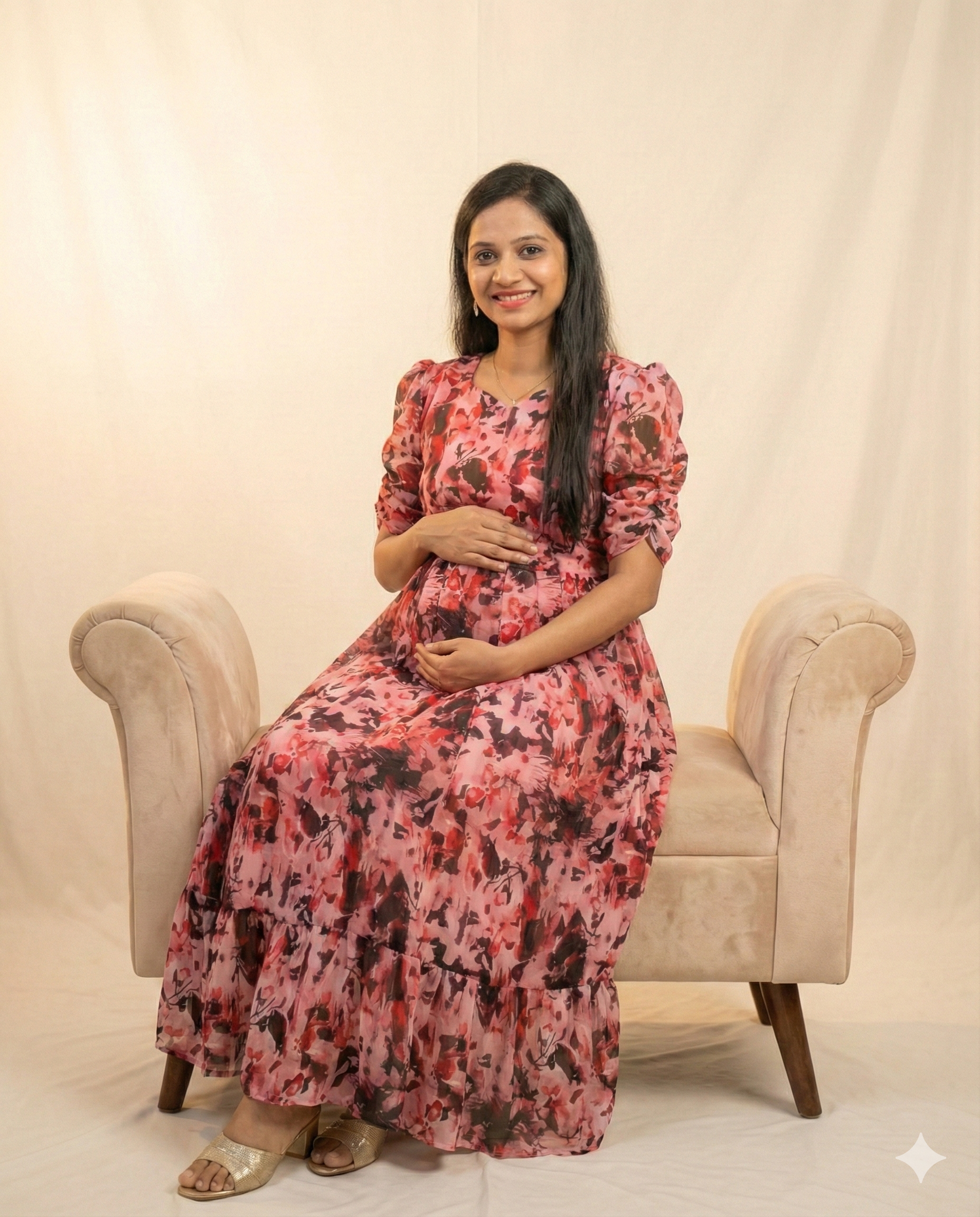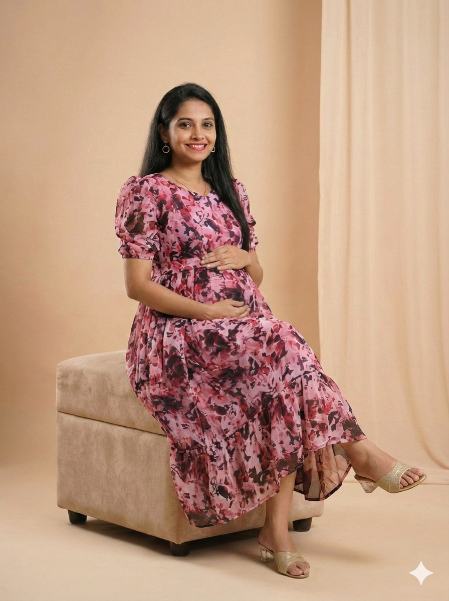 Georgette 2-Tier Feeding Kurti with Puff Sleeves – Pink FloralGeorgette 2-Tier Feeding Kurti with Puff Sleeves – Pink Floral