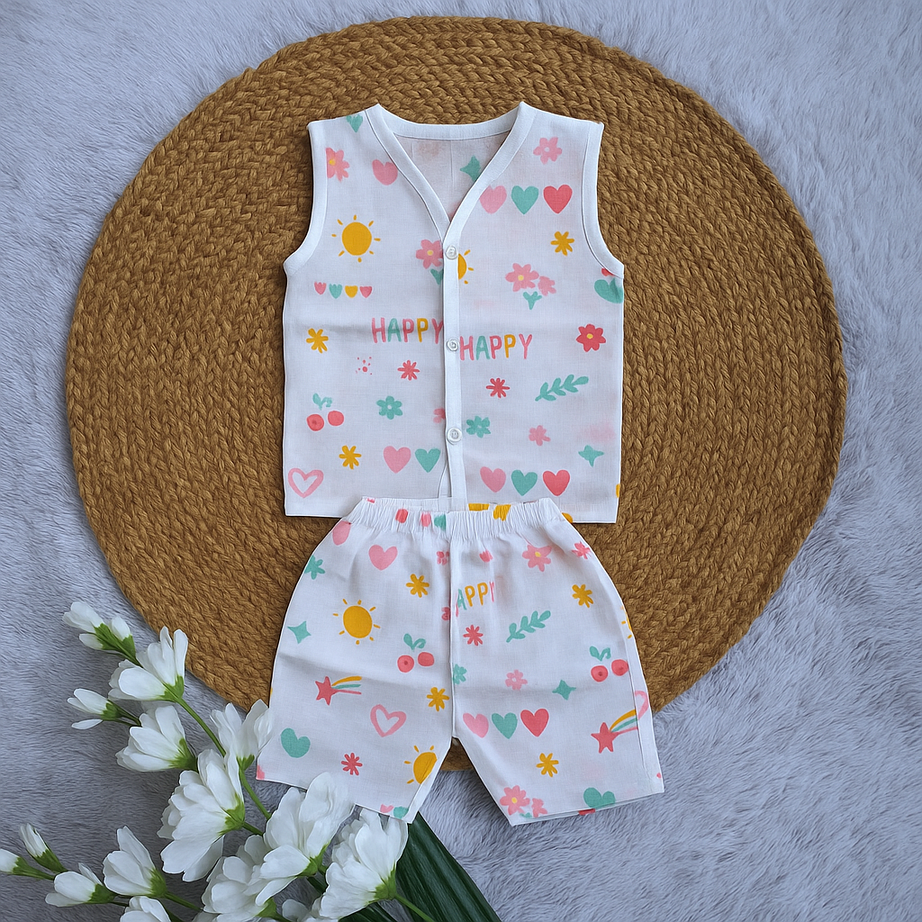 Muslin Cotton, New Born Babies, Sleeveless Co-ord set