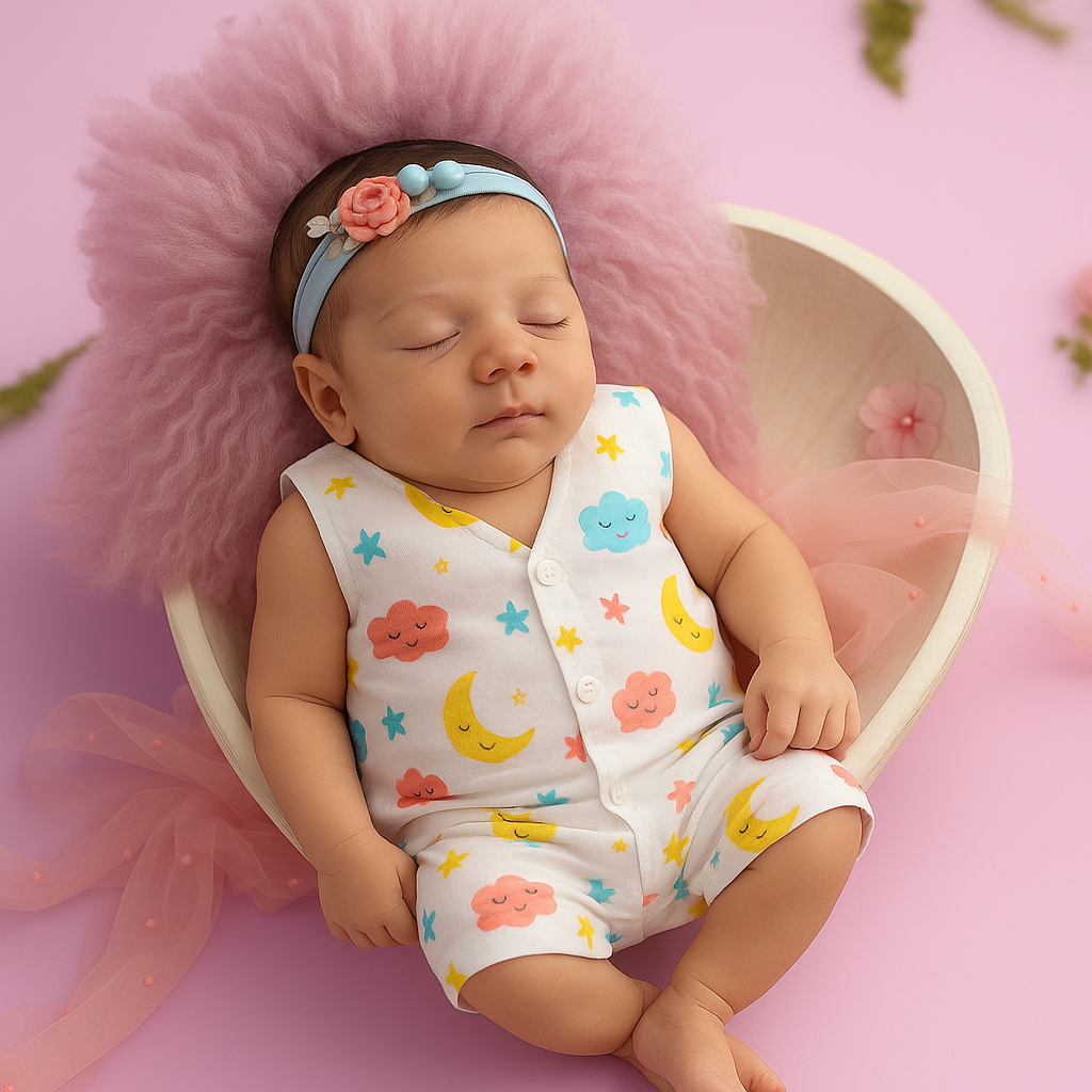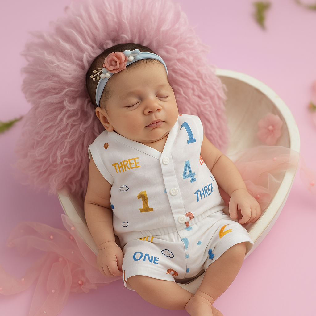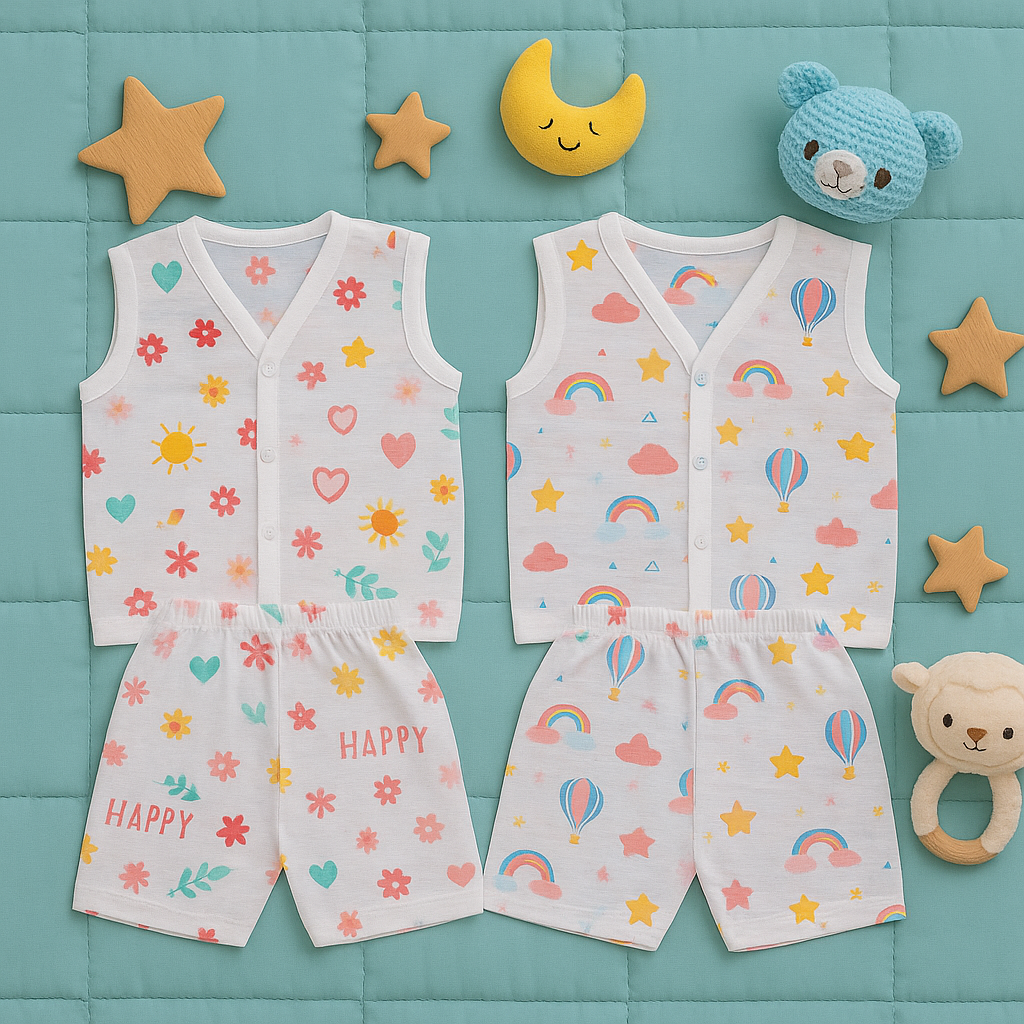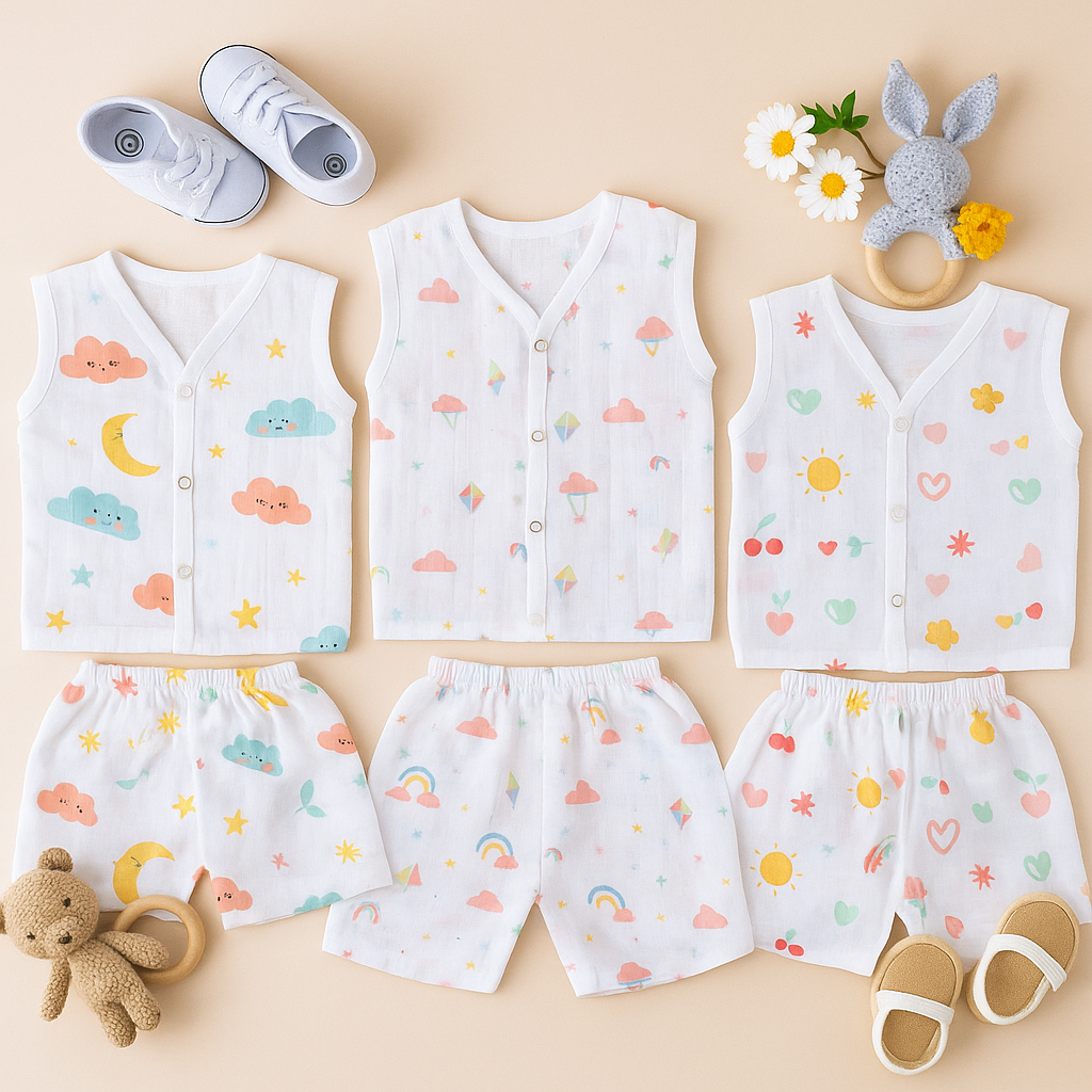 ❥ Muslin Cotton Sleeveless Baby Co-Ord Set designed for newborn comfort (0–3 months)