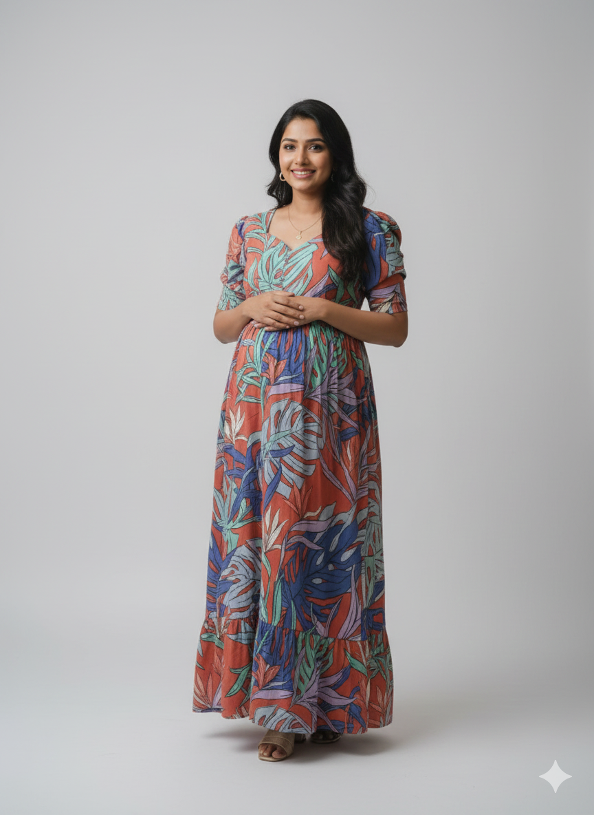 Premium Georgette Floral 2-Tier Feeding Maxi Dress