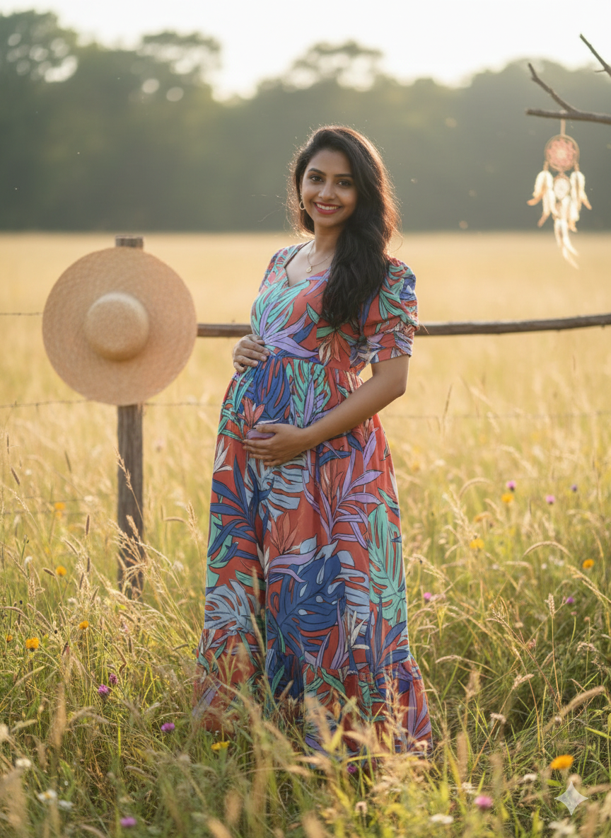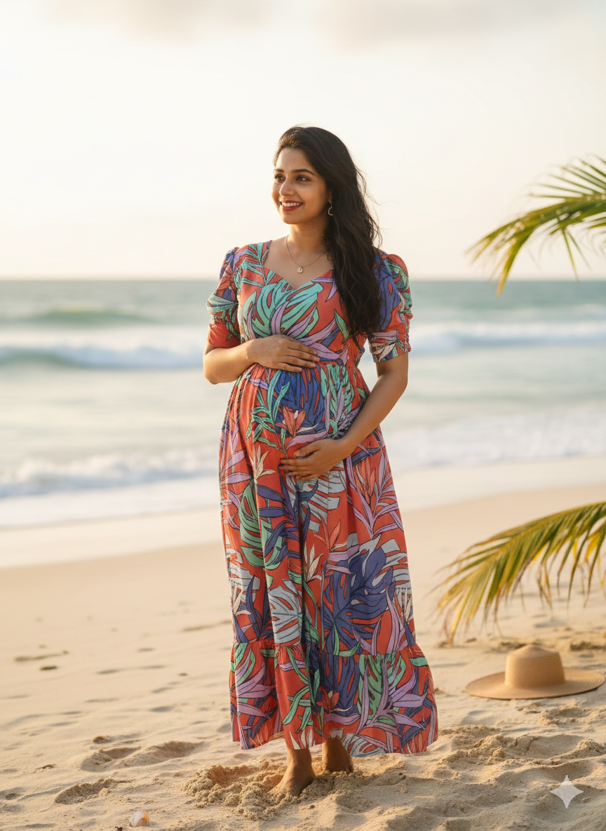 ❥ Premium Georgette Floral 2-Tier Feeding Maxi Dress designed for elegant maternity & nursing wear