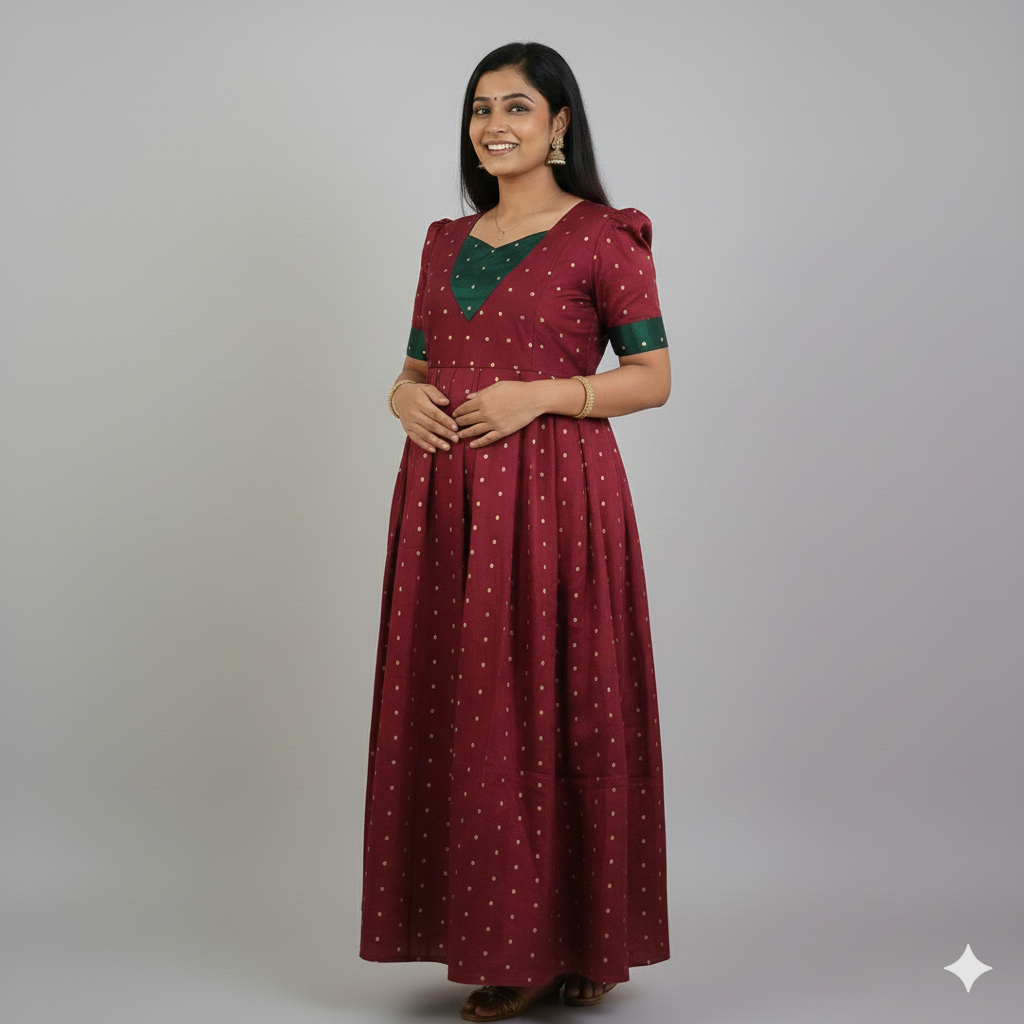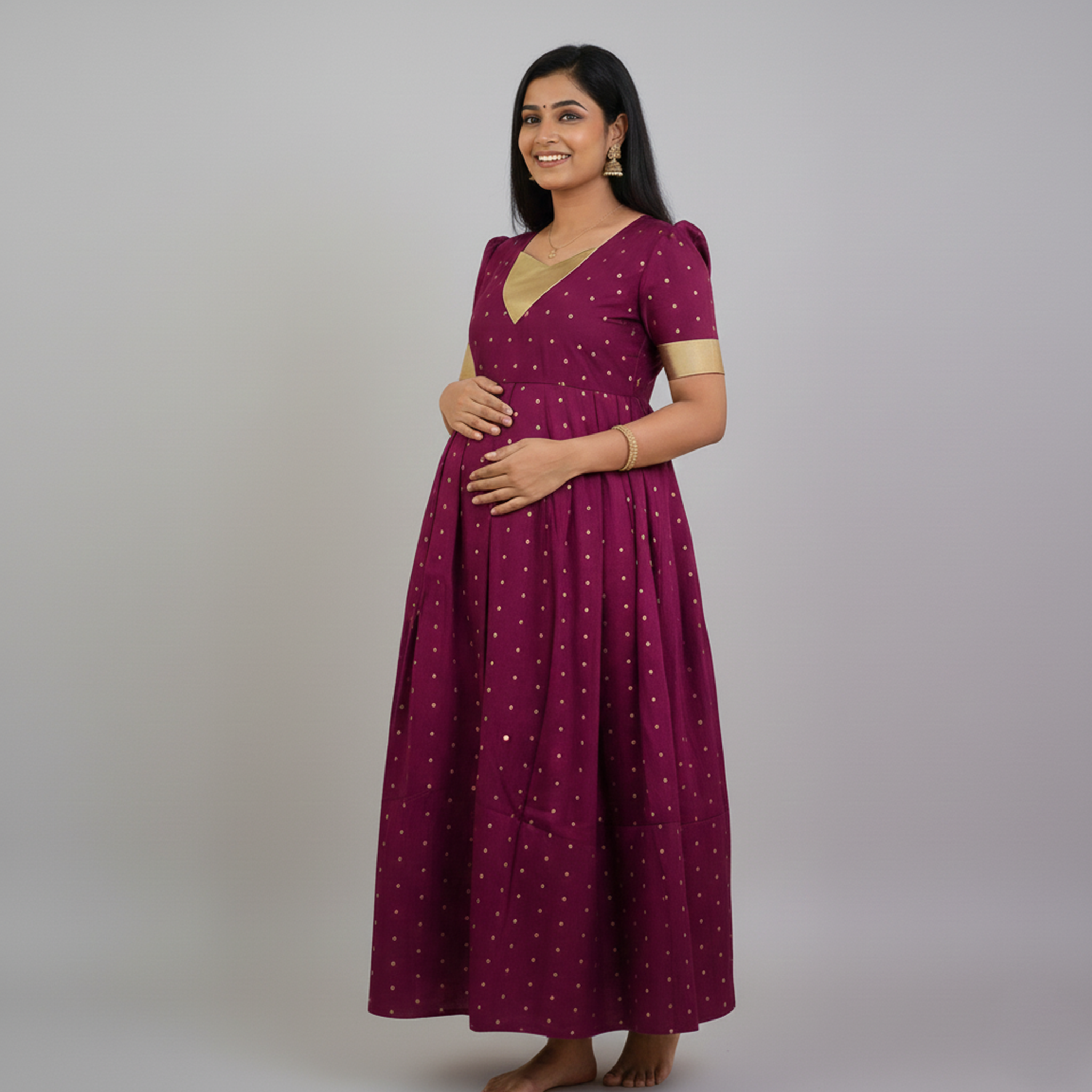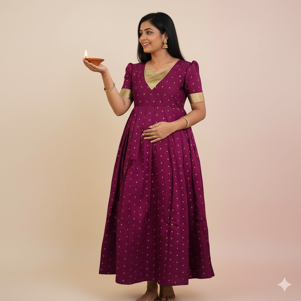 ❥ Traditional Silk Feeding Dress designed for elegant maternity & nursing wear