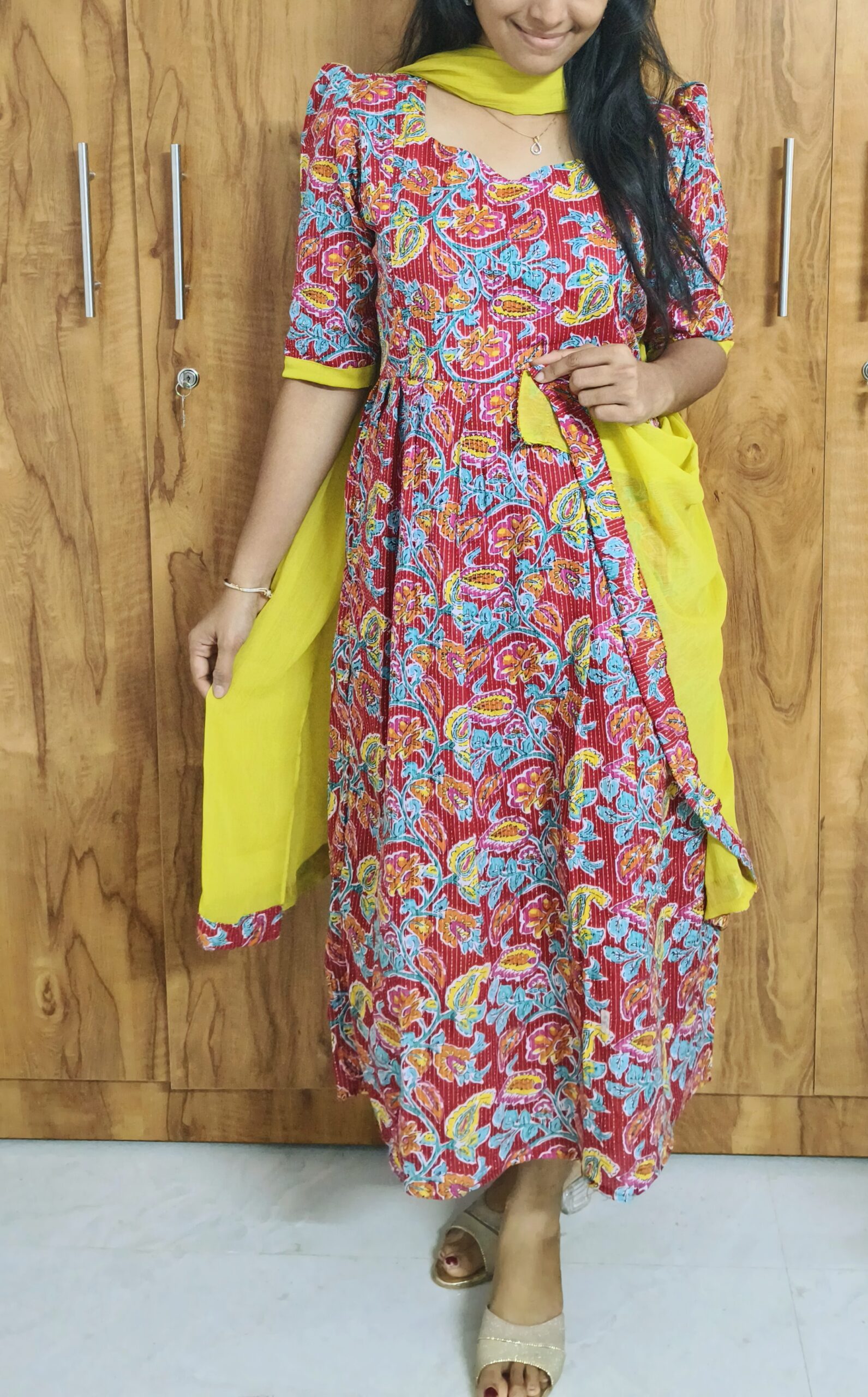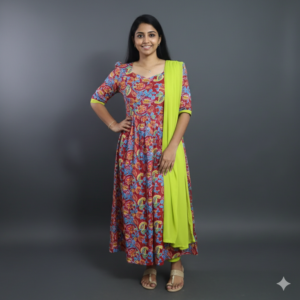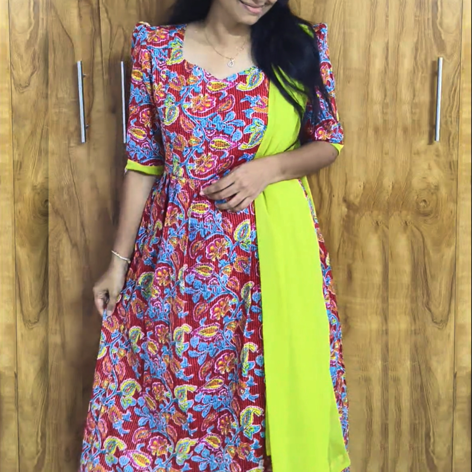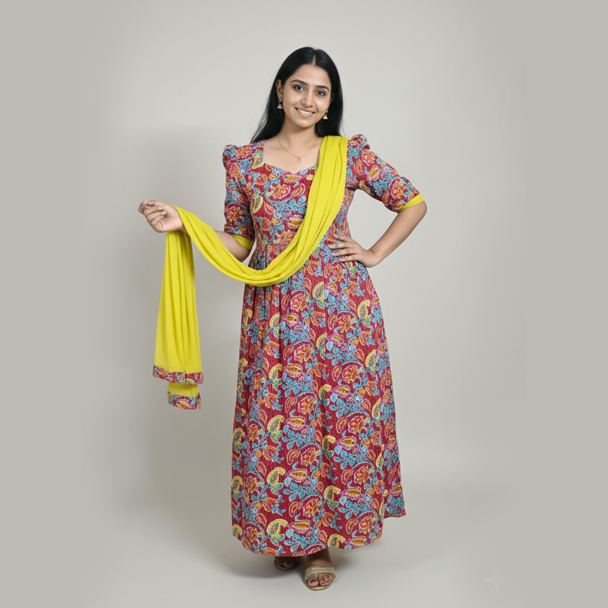 ❥ Premium Antha Cotton Feeding Kurthi with Chiffon Shawl designed for everyday maternity & nursing comfort